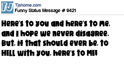 X says Here's to you and here's to me, and I hope we never disagree. But, if that should ever be, to HELL with you, here's to ME!