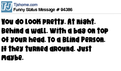 X says You do look pretty. At night. Behind a wall. With a bag on top of your head. To a Blind Person. If they turned around. Just maybe.