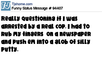 X is Really questioning if I was arrested by a real cop, I had to rub my fingers on a newspaper and push em into a glob of silly putty.