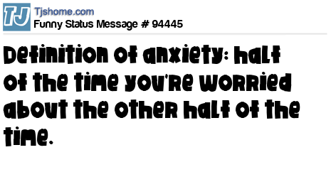 X Definition of anxiety: half of the time you're worried about the other half of the time.