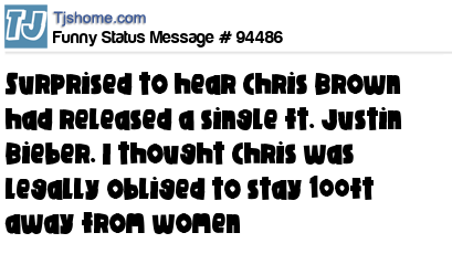 X is Surprised to hear Chris Brown had released a single ft. Justin Bieber. I thought Chris was legally obliged to stay 100ft away from women