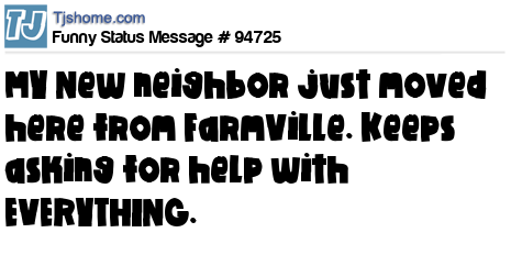 X  MY New neighbor just moved here from FarmVille. Keeps asking for help with EVERYTHING.
