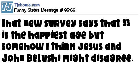 X That new survey says that 33 is the happiest age but somehow I think Jesus and John Belushi might disagree.