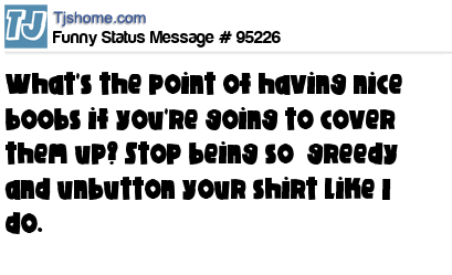 X What's the point of having nice boobs if you're going to cover them up? Stop being so greedy and unbutton your shirt like I do.