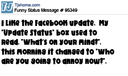 X is I like the Facebook update.  My "Update Status" box used to read, "What's on your mind?", this morning it changed to "Who are you going to annoy now?".