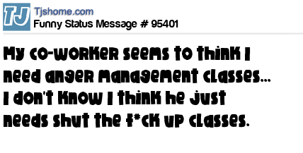 X My co-worker seems to think I need anger management classes... I don't know I think he just needs shut the f*ck up classes.