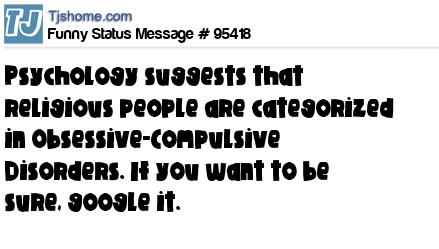 X psychology suggests that religious people are categorized in Obsessive-Compulsive Disorders. If you want to be sure, google it.