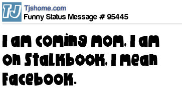 X says I am coming mom, I am on Stalkbook, I mean Facebook.