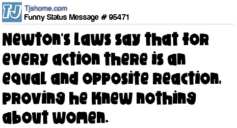 X Newton's laws say that for every action there is an equal and opposite reaction, proving he knew nothing about women.