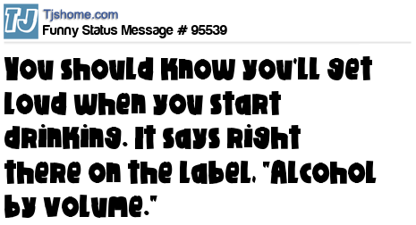 - # 125160 You should know you'll get loud while drinking. It says it right there on the bottle: "alcohol by volume".