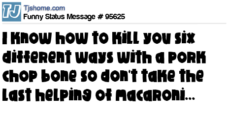 X I know how to kill you six different ways with a pork chop bone so don't take the last helping of macaroni...