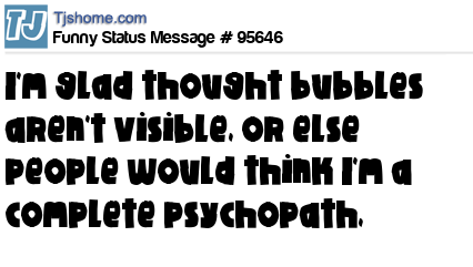 X is I'm glad thought bubbles aren't visible, or else people would think I'm a complete psychopath,