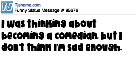 X I was thinking about becoming a comedian, but I don't think I'm sad enough.