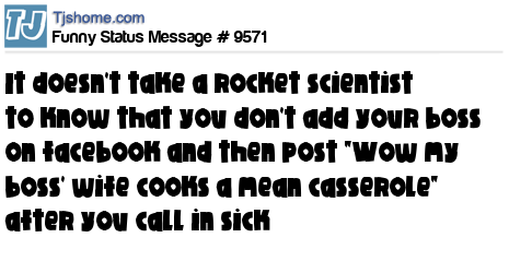 X is it doesn't take a rocket scientist to know that you don't add your boss on facebook and then post "Wow my boss' wife cooks a mean casserole" after you call in sick