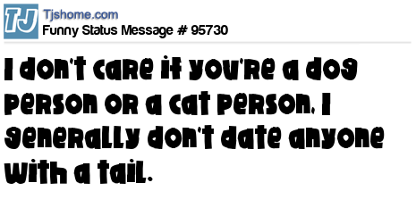 X I don't care if you're a dog person or a cat person, I generally don't date anyone with a tail.