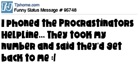 X I phoned the Procrastinators Helpline... They took my number and said they'd get back to me :/