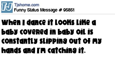 X is When I dance it looks like a baby covered in baby oil is constantly slipping out of my hands and I'm catching it.