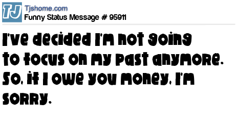 X I've decided I'm not going to focus on my past anymore. So, if I owe you money, I'm sorry.