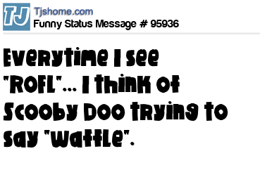 X says Everytime I see "ROFL"... I think of Scooby Doo trying to say "waffle".