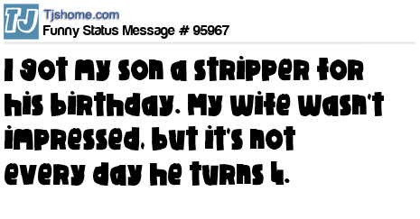 X says I got my son a stripper for his birthday. My wife wasn't impressed, but it's not every day he turns 4.
