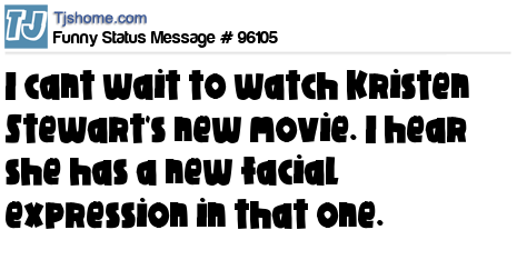 X says I cant wait to watch Kristen Stewart's new movie. I hear she has a new facial expression in that one.