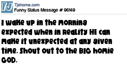 X says I wake up in the morning expected when in reality HE can make it unexpected at any given time. Shout out to the BIG homie GOD.