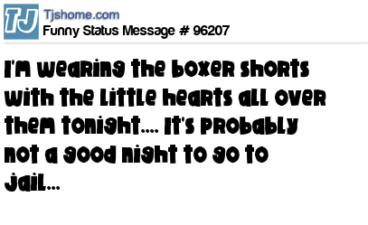 X is I'm wearing the boxer shorts with the little hearts all over them tonight.... It's probably not a good night to go to jail...