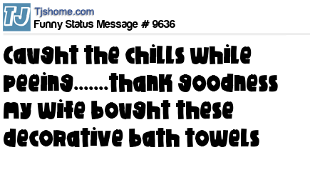 - # 110041 The wife's only listening to you outside the bathroom door to make sure you're not touching the decorative hand towels