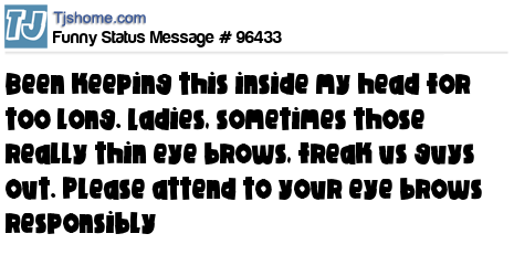 X is Been keeping this inside my head for too long. Ladies, sometimes those really thin eye brows, freak us guys out. Please attend to your eye brows responsibly
