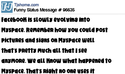 X is Facebook is slowly evolving into Myspace. Remember how you could post pictures and signs on Myspace well that's pretty much all that I see anymore. We all know what happened to Myspace. That's right no one uses it anymore. Just sayin
