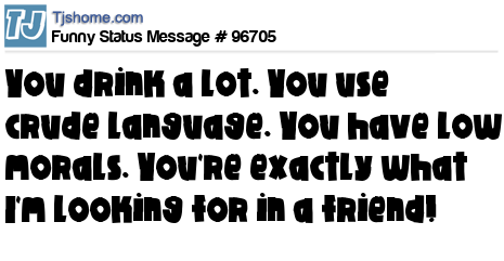 X says You drink a lot. You use crude language. You have low morals. You're exactly what I'm looking for in a friend!