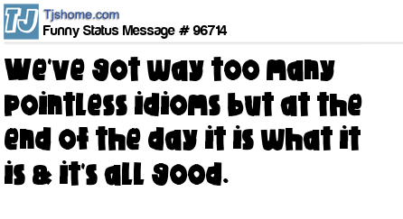 X We've got way too many pointless idioms but at the end of the day it is what it is & it's all good.