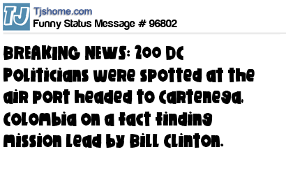 X says BREAKING NEWS: 200 DC Politicians were spotted at the air port headed to Cartenega, Colombia on a fact finding mission lead by Bill Clinton.