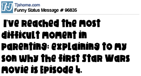 X says I've reached the most difficult moment in parenting: explaining to my son why the first Star Wars movie is Episode 4.