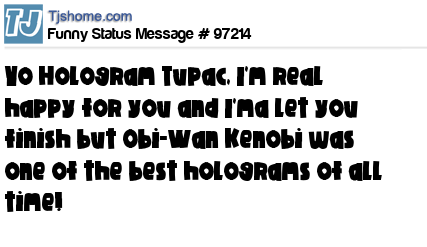 - # 97346 Yo, Tupac, I'm really happy for you; I'mma let you finish... but Princess Leia had the best hologram of all time. All time!