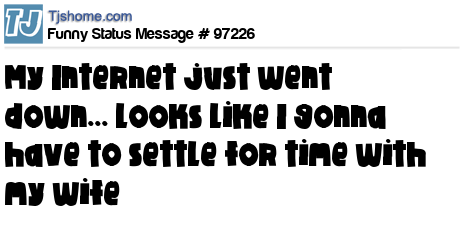 X My Internet just went down... Looks like I gonna have to settle for time with my wife