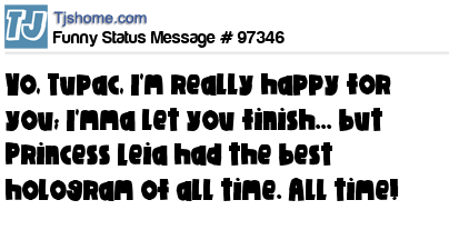 - # 97214 Yo Hologram Tupac, I'm real happy for you and I'ma let you finish but Obi-Wan Kenobi was one of the best holograms of all time!