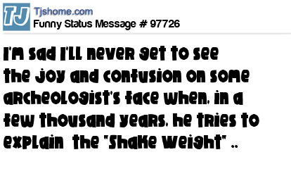 X I'm sad I'll never get to see the joy and confusion on some archeologist's face when, in a few thousand years, he tries to explain the "Shake Weight" ..