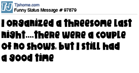 X I organized a threesome last night....there were a couple of no shows, but I still had a good time