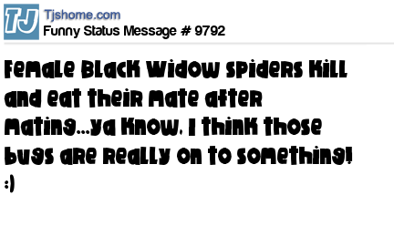 X says Female Black Widow spiders kill and eat their mate after mating...ya know, I think those bugs are really on to something! :)