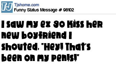 X says I saw my ex go kiss her new boyfriend I shouted, "Hey! That's been on my pen!s!"