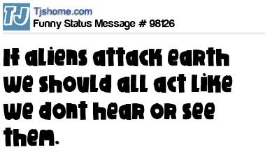 - # 9194 THE ALIENS ARE ATTACKING EARTH ON FRIDAY. THEIR PLAN IS TO KIDNAP ALL THE BEAUTIFUL & SEXY PEOPLE.. DONT WORRY, YOU'RE SAFE... I JUST WANTED TO SAY GOODBYE, PLEASE CHECK IN ON MY MOTHER IN LAW EVERY NOW AND THEN