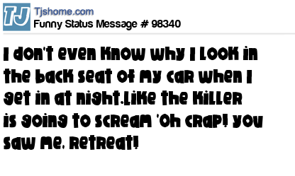 X says I don't even know why I look in the back seat of my car when I get in at night.Like the killer is going to scream 'Oh crap! you saw me, retreat!