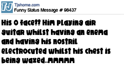 X is His O face?? Him playing air guitar whilst having an enema and having his nostril electrocuted whilst his chest is being waxed..mmmmm