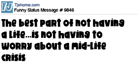 X says the best part of not having a life...is not having to worry about a mid-life crisis