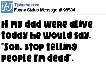 - # 74349 If my dad were alive today he would say, "Stop telling people I'm dead".