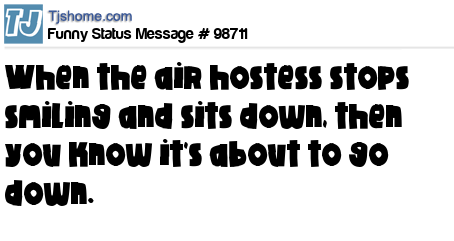 X says When the air hostess stops smiling and sits down, then you know it's about to go down.