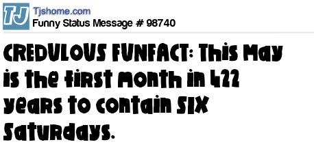 X CREDULOUS FUNFACT: This May is the first month in 422 years to contain SIX Saturdays.