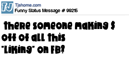 - # 60850 There are 3 meanings behind 'Liking' someones status. 1) I agree. 2) I realize this is about me so I'm liking it to rub in your face. 3) I want to bang you. :)