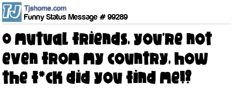 X 0 mutual friends, you're not even from my country, how the f*ck did you find me!?
